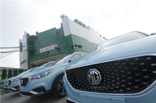 500 MG ZS electric SUVs made by SAIC Motor were exported to Europe through ro-ro ships from the Shanghai Haitong Dock on Sept 28...