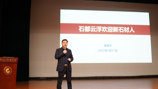 紧接着,广东云浮市石材行业协会常务副会长龚美华就云浮市石材行业的产业链和企业人才需求进行了介绍,他希望同学们明确自身职业定位和职业规划,积极参与现代学徒制,科学选择企业和岗位,在岗位上锻炼自己,提升自己的综合能力,为后期的职业道路打下坚实基础。