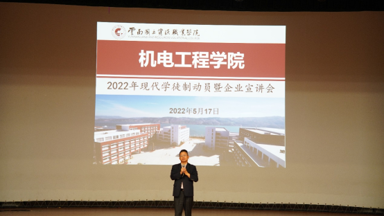 会议开始,陈立老师向同学们介绍了到场企业和与会领导、老师并强调了会场纪律。接着,学院现代学徒制负责人熊国栋对现代学徒制的内容企业选择和协议签订等方面进行了详细介绍希望同学们抓住机会,吃苦耐劳、用心学习,在实习实践中不断提升自己,脚踏实地,爱岗敬业,为实现职业目标积蓄力量。