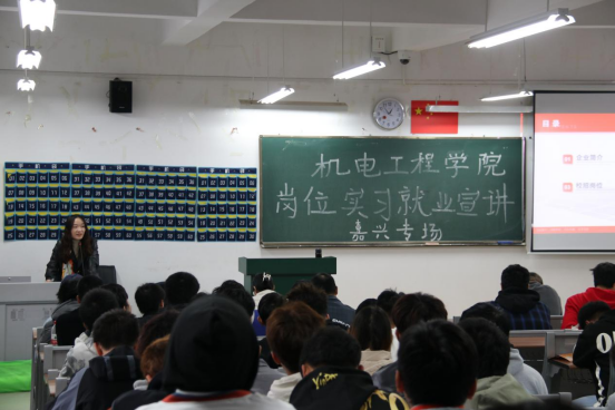 浙江省嘉兴市秀洲区大学生服务中心郑义婷围绕嘉兴实习就业环境、既往实习就业学生风采、权益服务和就业政策等方面进行了详细讲解,并表明嘉兴大学生服务中心将通过实际行动保障学校在企学生的合法权益,为在企学生做好系列服务工作。