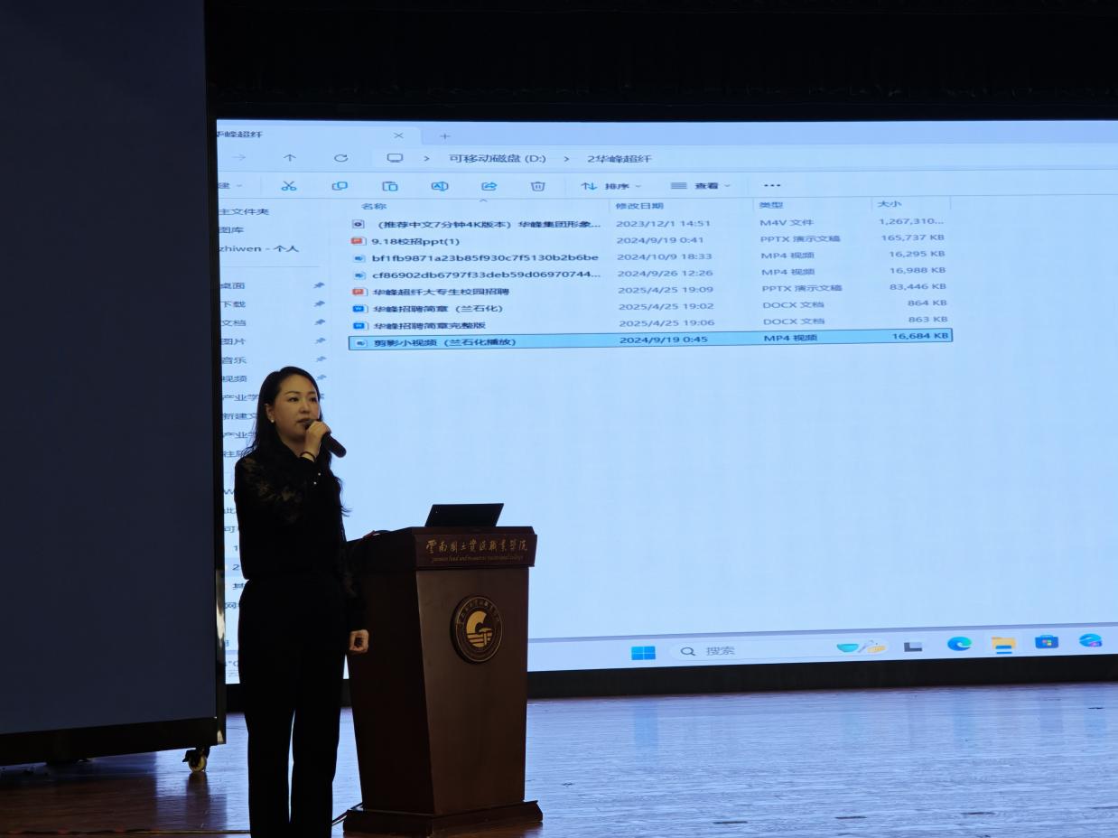 在宣讲环节,企业代表通过"PPT+视频”形式,系统解读实习岗位核心信息与企业保障体系,重点围绕岗位需求、技能培养、薪酬福利、职业发展四大维度展开。七家企业现场设立问答环节,就学生关切的食宿保障、通勤方案等实际问题进行互动。