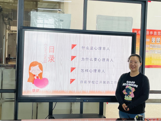 会议伊始,辅导员工作室成员毛颖结合自身的心理育人工作经验,主要从什么是心理育人、为什么要心理育人、怎样心理育人、目前学校已开展的工作四个方面进行讲解。她指出,心理育人是“十大育人体系”之一,是通过开设系列心理健康教育讲座、开展“525”品牌心理活动、建设心理预警防控系统等,帮助大学生形成正确的认知、积极的情感、坚强的意志以及健全的人格,是提升大学生心理健康水平的重要途径和必要保障。她认为,做好该项工作要从以下几个方面努力:一是要积极学习相关政策,了解心理育人机制和相关规范,遵循心理育人规律,创造性地开展心理育人工作。二是要增强心理育人意识,提高心理育人能力,不断学习心理育人相关知识,主动思考心理育人方法。三是要积极用好活动育人功能,要有计划有目的地开展心理育人活动,不断扩大心理育人范围,潜移默化地影响学生的心理状态和行为表现。