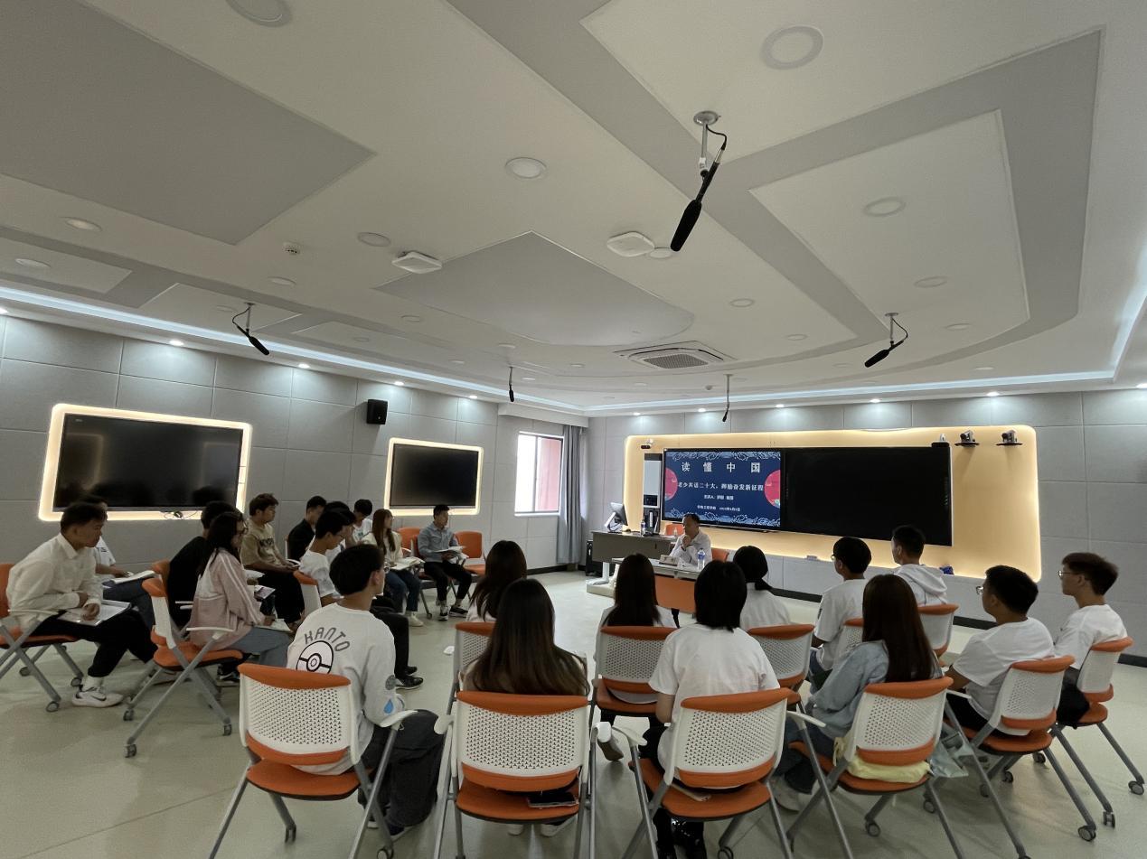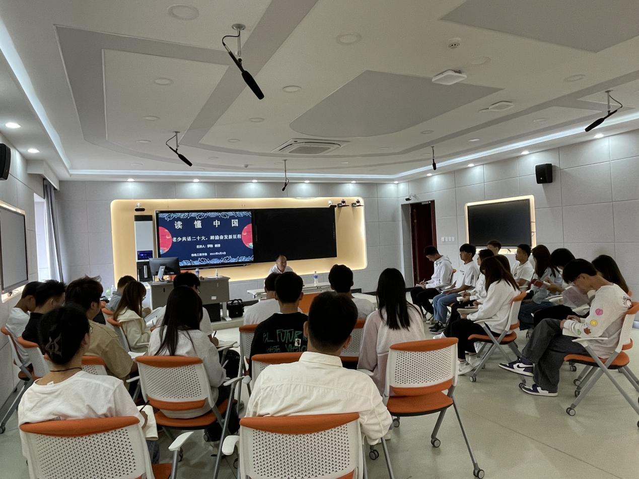 为深入学习贯彻党的二十大精神,激励我院学生在新征程上立志做有理想、敢担当、能吃苦、肯奋斗的新时代好青年,根据教育部关工委下发的“读懂中国”文件精神,今年会jinnianhuicom于6月9日在崇实楼505开展了“老少共话二十大,踔厉奋发新征程”读懂中国主题座谈会。本次座谈会由辅导员全伟东老师主持,罗刚教授担任座谈会主讲嘉宾,青马班学员以及部分2022级同学共同参加。