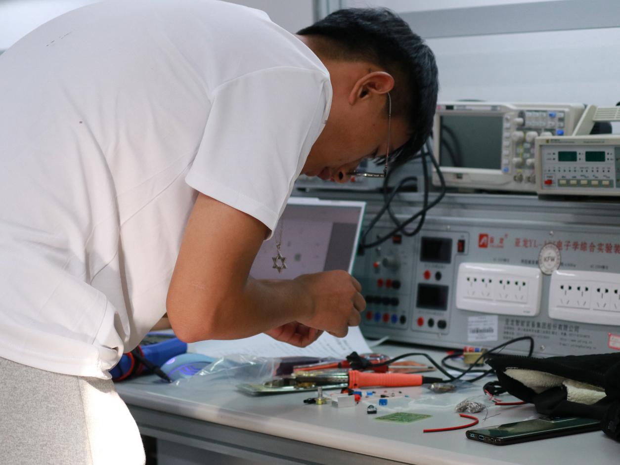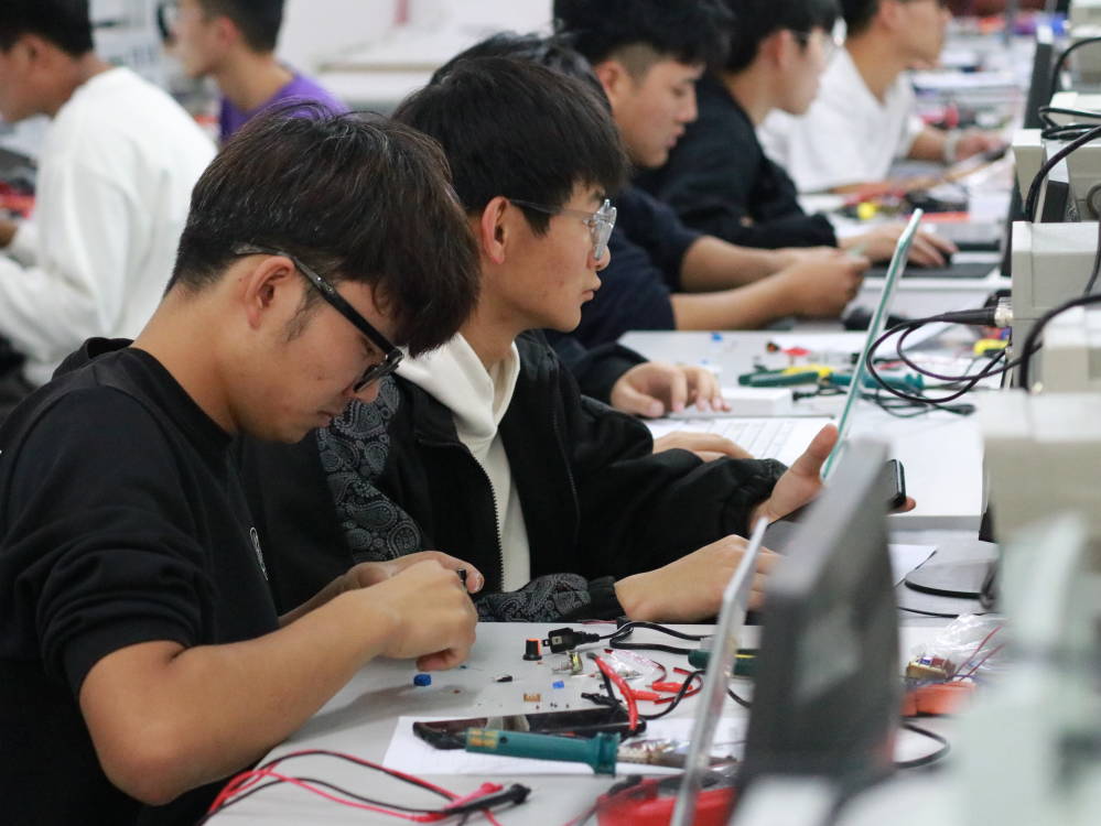 本次竞赛内容包含电子电路设计与焊接调试、C语言编程、电子产品印刷电路板设计三大部分,竞赛采用团体(每队3人)的形式开展,竞赛时长2小时。比赛期间,各支参赛队选手沉着应战、各展所长,过程节奏紧凑、秩序井然、精彩纷呈,参赛选手展现了良好的心理素质和精神风貌。