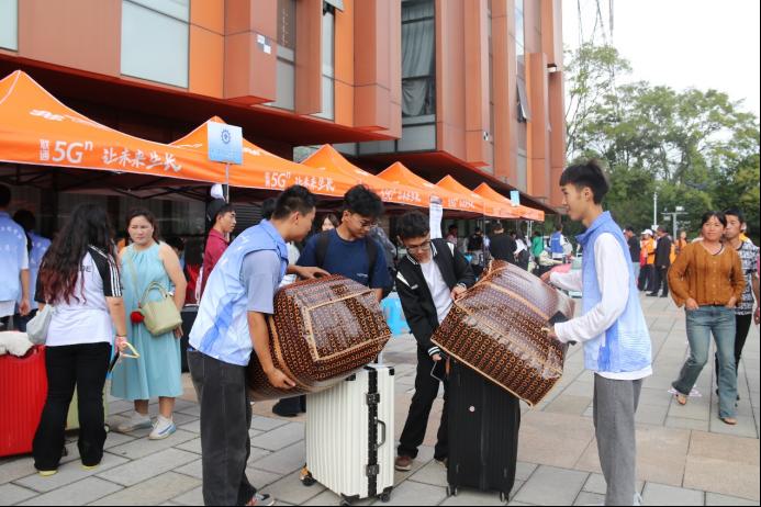 迎新过程中,学院志愿者们细致耐心、热情服务,“蓝马甲”们穿梭在各个迎新点,热情地为新生及其家长提供报到指引、行李搬运、校园讲解等服务,他们忙碌的身影成了迎新现场一道亮丽的风景线。学院领导深入迎新工作一线,与全体辅导员、学生干部及志愿者们并肩作战。他们不仅亲自指导迎新工作,更亲自为新生及家长答疑解惑,传递学院对新生的深切关怀与殷切期望。每一句问候,每一个微笑,都让这个初秋的校园充满了温暖与力量。