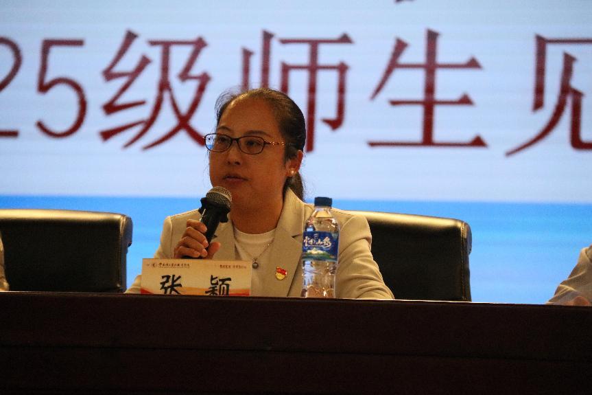 随后,张颖书记为新生描绘了一段自由、充实、充满机遇与挑战的大学生活。她寄语同学们要树立远大理想、坚定信念,将个人追求与国家发展紧密结合,努力成长为有理想、有道德、有文化、有纪律的社会主义建设者和接班人。