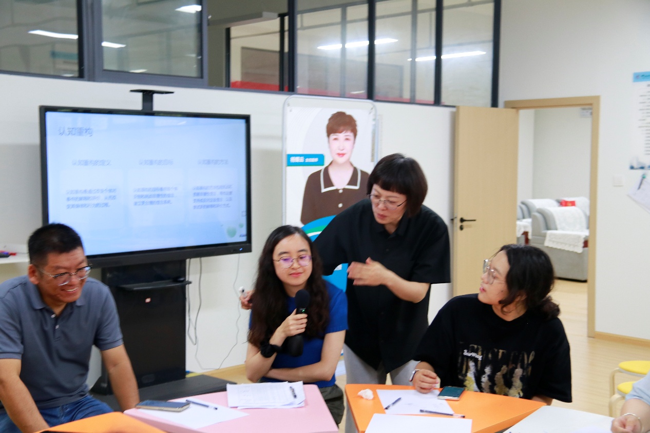本次活动特邀校外专业心理团队担任主讲,现场围绕教师群体常见的心理压力问题展开。心理团队成员细致讲解情绪调节、压力释放的实用技巧,还鼓励老师们围坐交流,分享各自在日常工作中调节压力的经验方法,现场氛围轻松融洽。