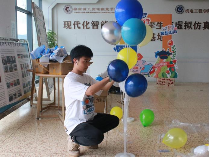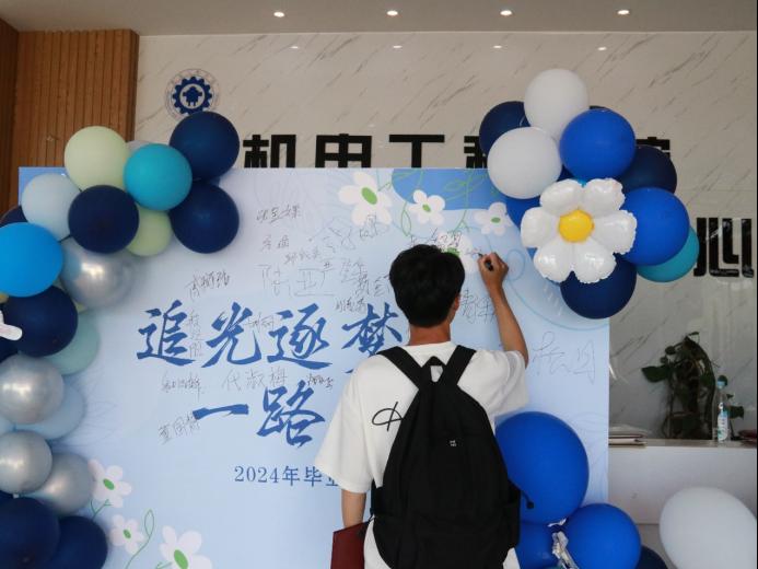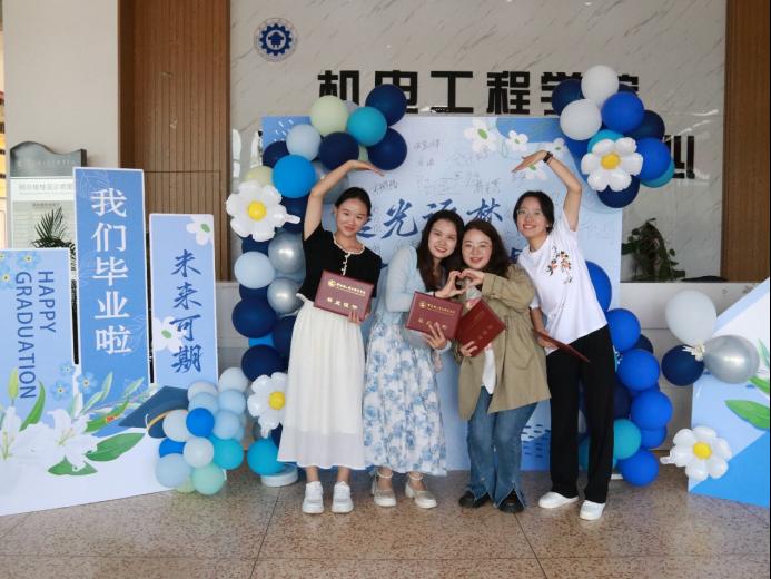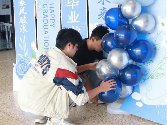 为确保毕业生返校工作有序进行,学院提前谋划,积极准备,对学生的毕业去向、就业情况、档案转接等进行了细致地梳理,对毕业证发放等环节进行详细安排。7月5日,学院团总支、学生会部分志愿者积极参与,大家团结协作,充分发挥自己的想象力,一起把学院办公区布置得温馨且充满活力,打造出了一个专属于“机电蓝”的特色小家园。