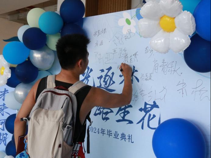 7月6日,学院2024届毕业生返校活动正式开始。首先,学院组织2024届全体返校毕业生到明礼堂参加学校组织的毕业典礼,由学校党政领导给优秀毕业生颁发毕业证书,学院党政领导给其他返校毕业生颁发毕业证,现场气氛热烈而温馨。接着,全体返校毕业生在明尚楼A203报到,在签到墙上签字留念,观看学院制作的毕业视频等,并按照专业班级有序找到对应老师办理毕业手续。部分毕业生还抓住返校机会主动看望自己的恩师,积极向老师们请教学习、工作中的问题,分享实习、就业过程中的感想,老师们则耐心地解答着每一个问题,用自己的亲身经历和深刻见解,为学生们指明努力方向。