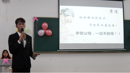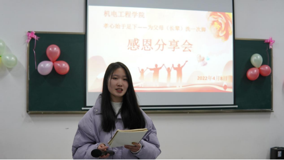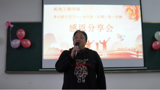 活动伊始,学院党总支书记王春莲老师为本次活动致辞。她指出感恩父母长辈是我们的传统美德。作为当代大学生,培养优良的道德品质,知恩、感恩是我们的必修课,希望在此次分享交流会中,同学们能真情流露,感悟感恩,做一个有孝心、有担当、知感恩的人。