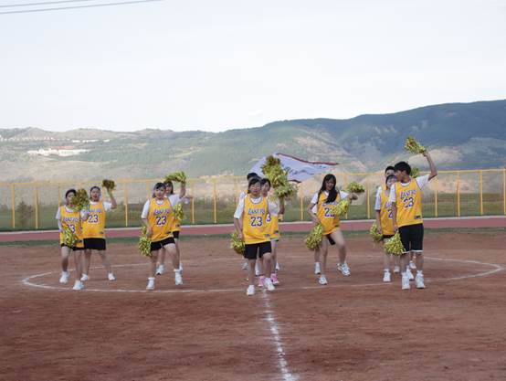 女队比赛落下帷幕,啦啦队迈着自信的步伐走进球场,你看!他们的舞姿多么有活力,带动了全场所有同学。