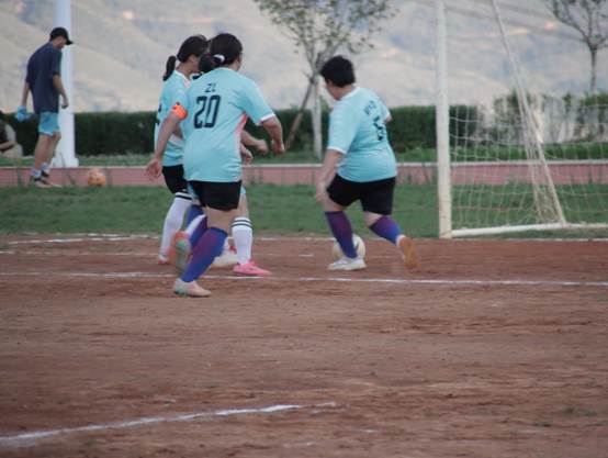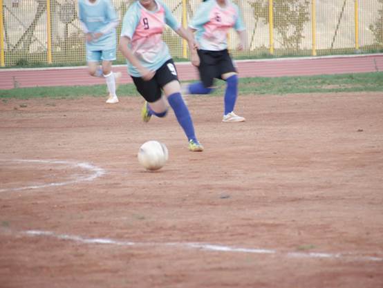 随着音乐随风飘向远方,精彩的啦啦操也随之结束。此时男队上场,比赛开始,你看那一技技漂亮的传球与射门,精彩万分。