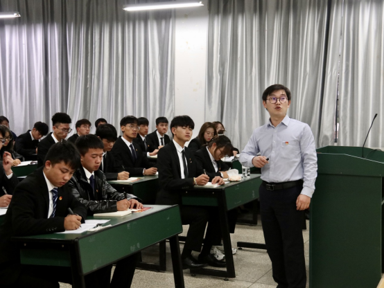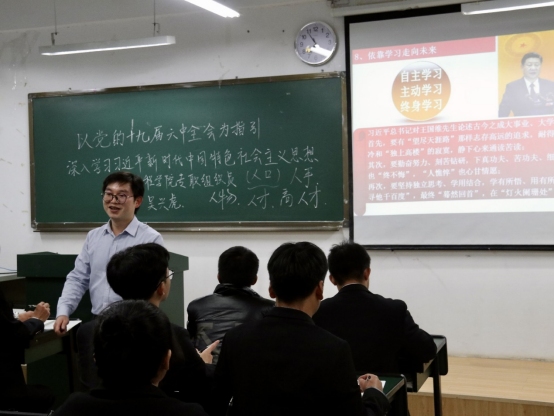 首先,吴兴虎老师以修业问道引出“明心见性,开悟觉醒”的观点,启发学员们深入思考。接下来,吴老师从“党的十九大确立习近平新时代中国特色社会主义思想为党的指导思想”、“习近平新时代中国特色社会主义思想实现了马克思主义中国化新的飞跃”、“习近平新时代中国特色社会主义思想的理论特色和历史贡献”、“习近平新时代中国特色社会主义思想的主要内容”、“深入学习贯彻习近平新时代中国特色社会主义思想”、“掌握马克思主义思想方法和工作方法”这六个方面深入浅出的讲解。他强调,为中国人民谋幸福、为中华民族谋复兴、为世界谋大同是习近平新时代中国特色社会主义思想的金钥匙。最后,他向同学们提出了四点建议:一是实事求是,讲真话、做真事会让自己面对困难时很从容,所有难题将会迎刃而解;二是发现自我、成就自我、超越自我,实现认知上的超越,不断升华自己的思想;三是坚持问题导向,针对性寻找方法解决问题;四是学会自主学习,多读书,让自己的大学生丰富多彩,实现人生价值。