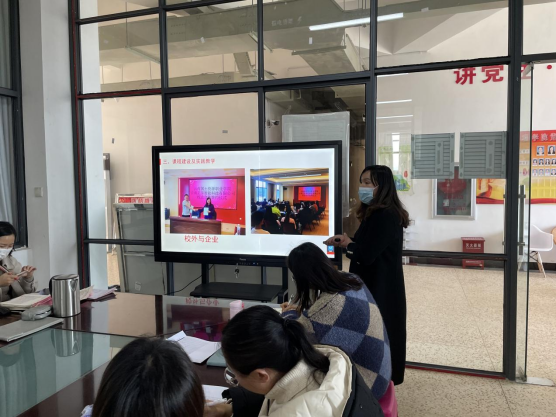 机电设备技术专业群教研室负责人邹艳红从专业群本年度的专业人才培养、1+X证书考评情况、师资进修与培养培训、实践教学及课程建设等方面进行了汇报。她指出本年度机电专业群最大的收获是成功申报了省级精品课程,并提出后期还会继续鼓励师生积极参加各类技能大赛,同时加强专业教材、实训室的建设。