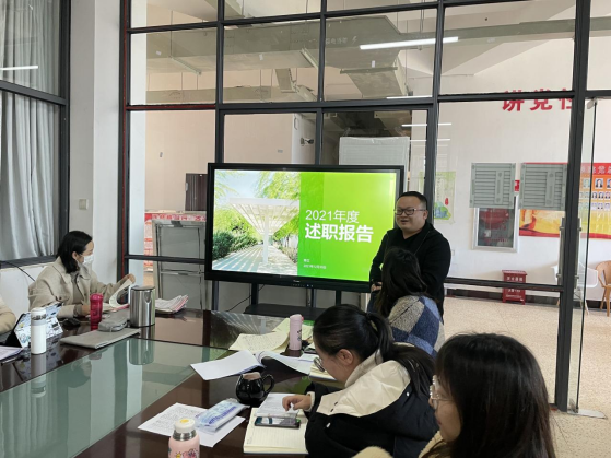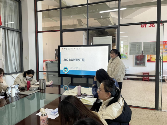 为公平、公正推选出学院年度考核结果为优秀的教职工,学院开展了2021年度职工履职考核第二轮述职汇报工作,会议由党总支书记王春莲主持。述职开始前,王春莲就此次开展述职工作的意义和评选流程进行了介绍,并要求大家维持会场秩序,公平客观进行评选,并从述职教师的汇报中,寻找差距,学习其身上的优秀品质。