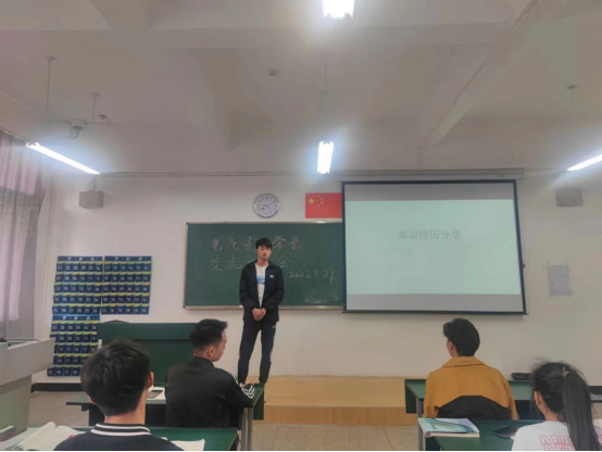 为帮助大一的小萌新了解专业就业前景,合理规划大学生活,激发自主学习动力,2021级电气自动化技术3、4班于2022年3月29日邀请了校级和省级优秀应届毕业生开展专业交流分享会。本次会议由班主任吴兴虎老师主持,何晓洪、俞强平、资俊飞、何华四位优秀学长与3、4班全体同学分享了生活、学习和实习工作经验。