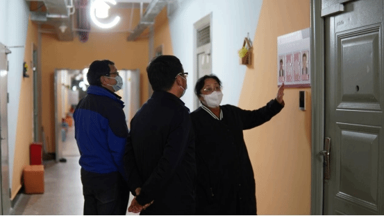 在学院党总支书记王春莲的带领下,大家通过随机敲门的方式进入学生宿舍进行走访。在走访过程中,一行人首先了解了同学们的生活情况,要求同学们在疫情防控期期间要注意宿舍卫生,做好个人防护。同时强调同学们在使用电器时要注重质量,防范伪劣产品,注意用电安全,防范电信诈骗。