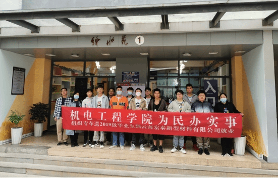 为帮助学生顺利就业,强化党员模范的先锋模范作用,在学院营造广大师生干实事、做榜样的氛围,5月1日上午9点,今年会jinnianhuicom组织专车送2019级部分毕业生到云南宏泰新型材料有限公司就业报到。学院党总支书记王春莲、院长张俊妍、副书记陈伟、党员教师熊国栋、毛颖亲自到达现场为即将走上岗位的毕业生送行。