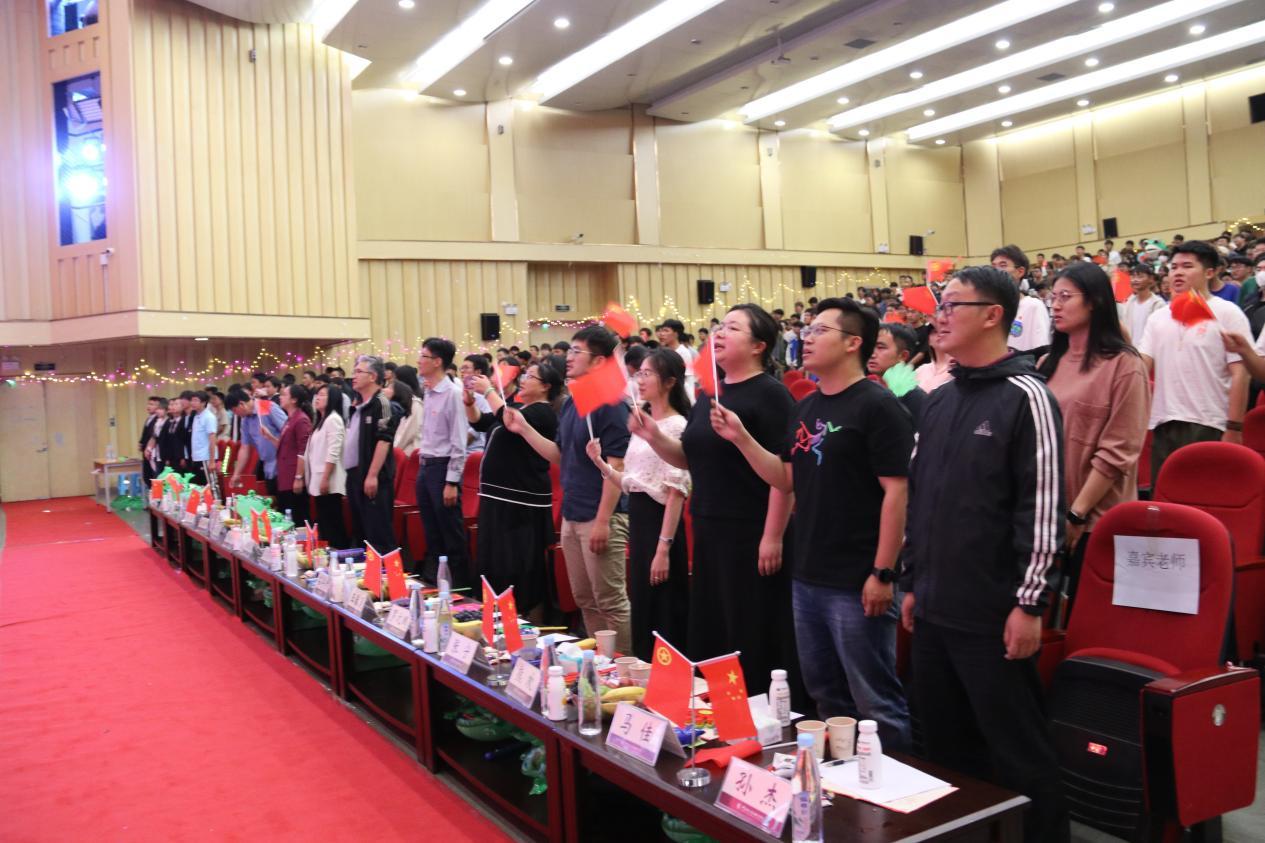 出席本次晚会的领导嘉宾有校党委副书记李昆峰、校党委宣传部部长茹华所、马克思主义学院院长张延星、审计处处长胡建华、珠宝旅游学院党总支书记张颖、素质教育学院党总支书记李霞、资源环境学院党总支副书记徐永全、校团委王姚尧、今年会jinnianhuicom党总支书记王春莲、今年会jinnianhuicom院长张俊妍、今年会jinnianhuicom副院长陈伟,担任本次文艺汇演评委有校团委副书记罗之鹏、资源环境学院团总支书记熊欢、建设工程学院团总支书记张宁、国土空间信息学院团总支负责人马佳、珠宝旅游学院团总支负责人孙杰。兄弟学院师生以及我院2022级全体同学共计八百余人欢聚一堂,共同观看演出,尽享视听盛宴。