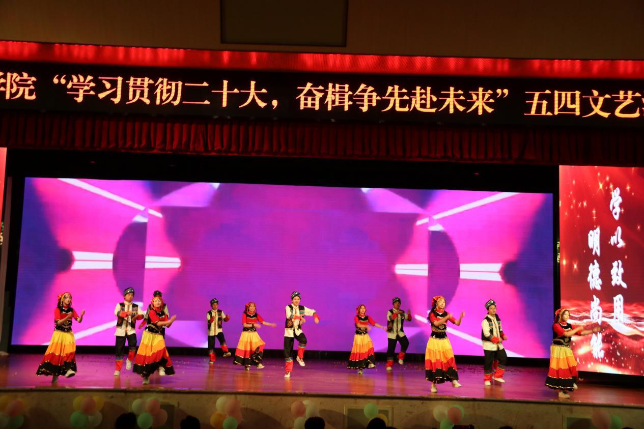 本次晚会共有16个节目,共分为“喜迎五四”“奋楫争先”两个篇章,以朗诵、歌舞、小品等形式展现丰富多彩的校园生活。同时晚会还特别设置了“滚屏抽奖环节”推动现场气氛。整场晚会气氛热烈、精彩纷呈。集体诗歌朗诵《盛世中华》彰显出青年的担当有为;舞蹈《美丽中国》《万疆》以优美的舞姿,表达了对祖国母亲的赞美与歌颂;《绣红旗》以小品的形式重现革命历史,展现了革命前辈的爱国情怀;一首《如愿》唱出了中国人血脉里割舍不了的情感羁绊;热情奔放的《北京的金山上》和活力四射的《哈尼宝贝》向我们展示了藏族和哈尼族特有的民族风情;小品《父与子》以幽默诙谐的对话,逗得观众捧腹大笑;网红舞《东西》《失恋阵线联盟》《隆里电丝》热情澎湃、舞步轻快,充满青春活力;学校大学生艺术团的《女王驾到》以极大的视觉冲击力,将现场气氛推到了最高潮,收获了浪潮般的欢呼与掌声。