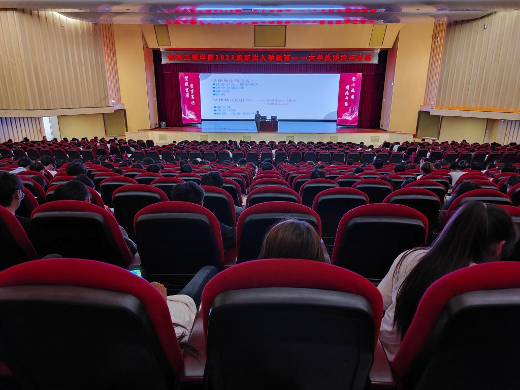 为提升2023级新生的法治观念,增强自我保护意识,更好地适应大学生活,今年会jinnianhuicom根据学生处下发的新生入学教育相关文件要求,于9月20日14:00,在明礼堂开展了主题为“大学生法治与生活”讲座。本次讲座由学院专职辅导员王亚文主持,特别邀请了学生处学生科负责人保少兵做专题讲座,专职辅导员徐菲、2023级全体同学共同参与了此次活动。