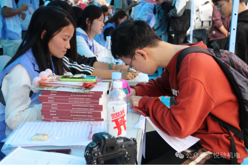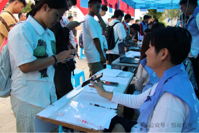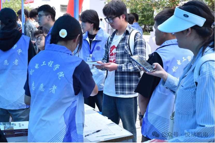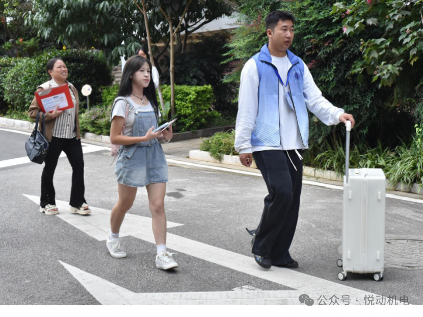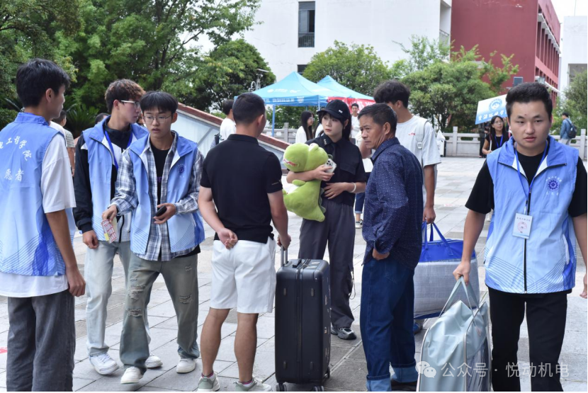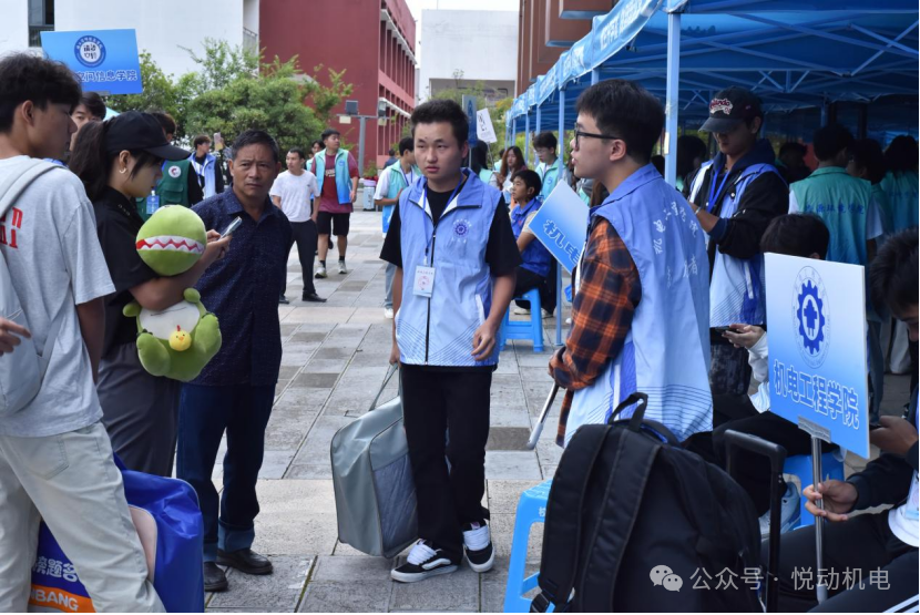 迎新现场,身着统一志愿服的学生志愿者是最亮眼的“风景线”。
