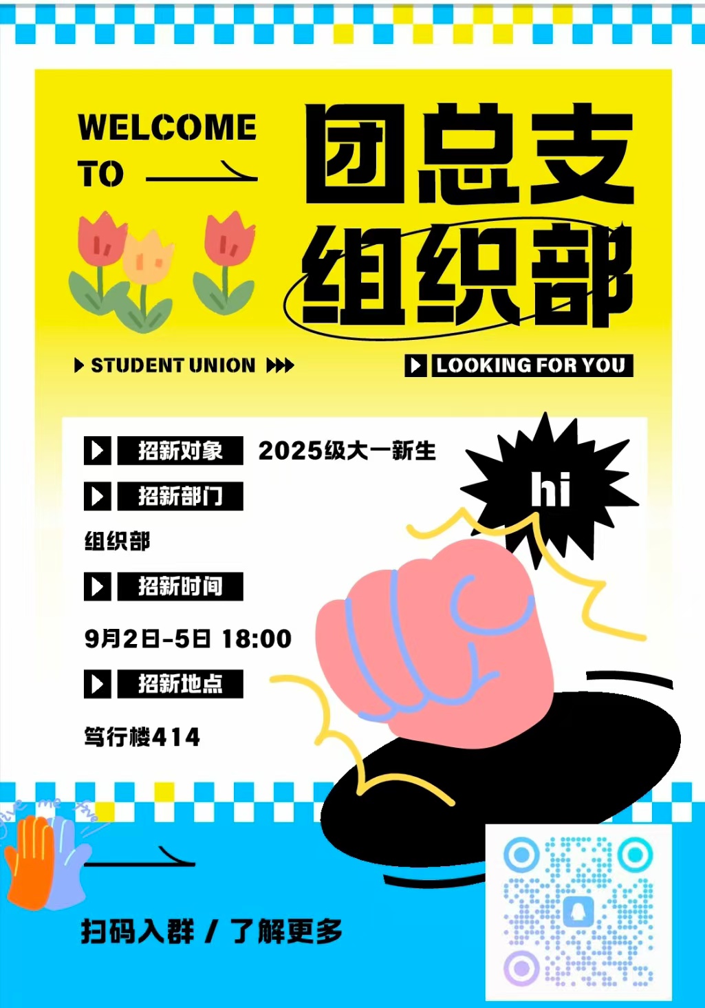 同学们好!团总支组织部是团务工作的核心力量。在这里,你能深度参与团日活动全流程:从精心制作团日活动开展表,为活动规划好方向;到细致收集活动材料,留存每一份珍贵的活动印记;再到认真进行团日活动的总结和批改,助力活动不断完善。每月,你还有机会走进班级,聆听团日活动并给出专业评分,近距离感受班级团建氛围。如果你有热情、有责任心,渴望在团务工作中锻炼自我、服务同学,那就加入我们团总支组织部吧,一起为学院事业贡献力量!