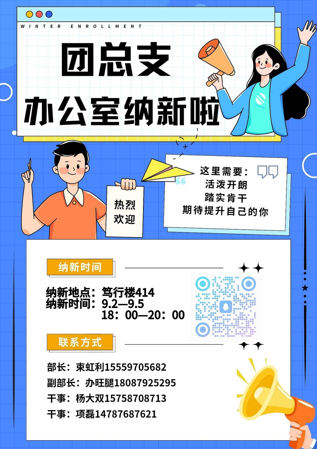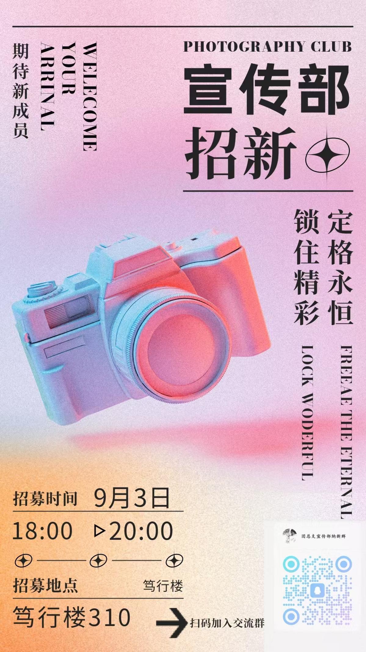 团总支宣传部是学院团学工作的“宣传阵地”。我们聚焦团内重要活动、主题团日、志愿服务等各类项目,负责从前期的宣传海报绘制、活动预告撰写,到活动中的素材收集、实时记录,再到后期的公众号运营、新闻稿发布及总结视频制作。作为团总支的重要组成部分,我们紧密配合团内各部门开展工作,让每一项团学活动的意义被更多同学知晓,让青春的声音传得更广。以笔为媒,以影为介,这里有热爱与责任的碰撞,期待你的加入,共筑更鲜活的团学宣传!