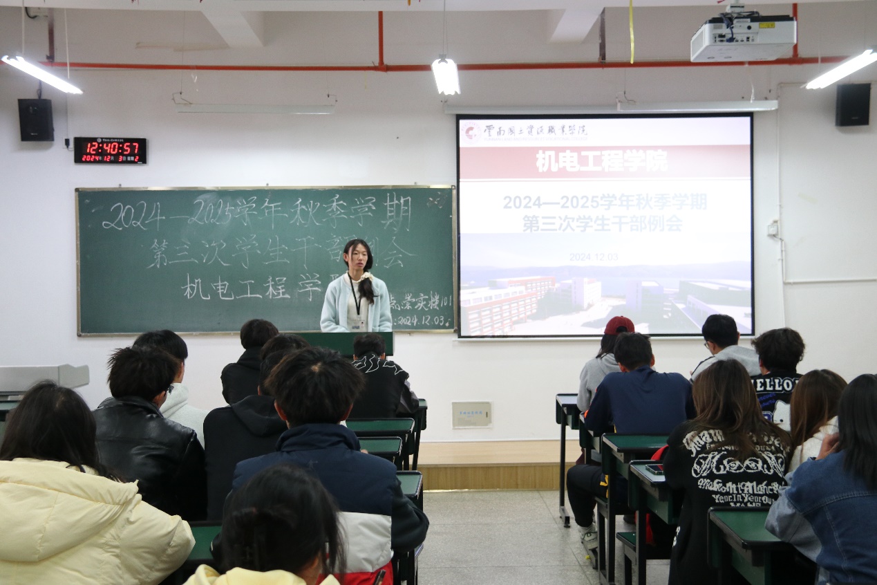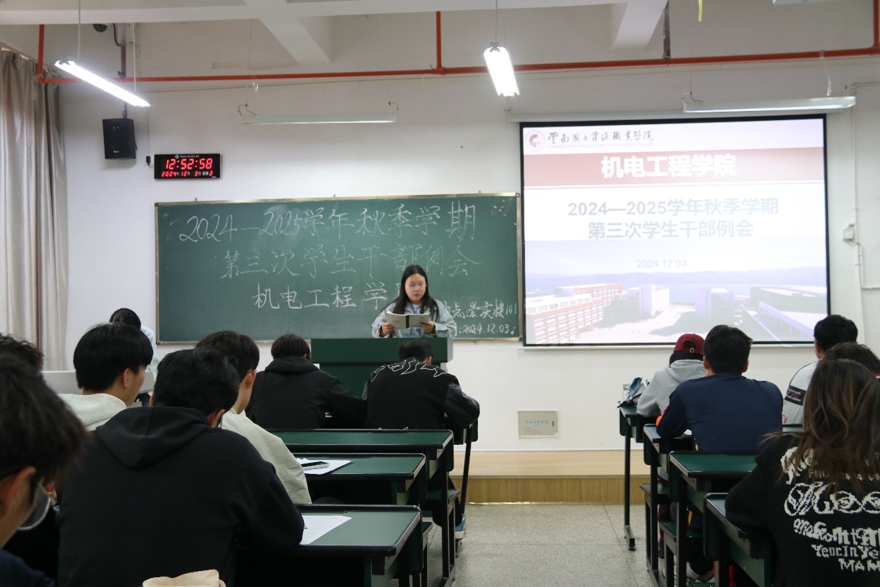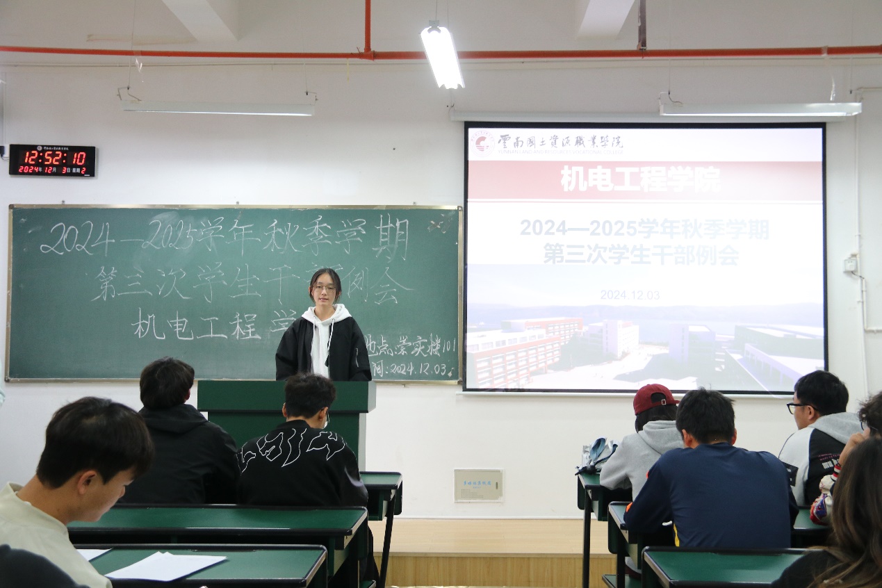 12月3日中午,今年会jinnianhuicom在崇实楼101召开了本学期第三次团总支学生会干部例会。本次会议由学院团总支负责人马玲老师,专职辅导员杨珍妹老师、杨海涛老师及全体团学干部共同参加。