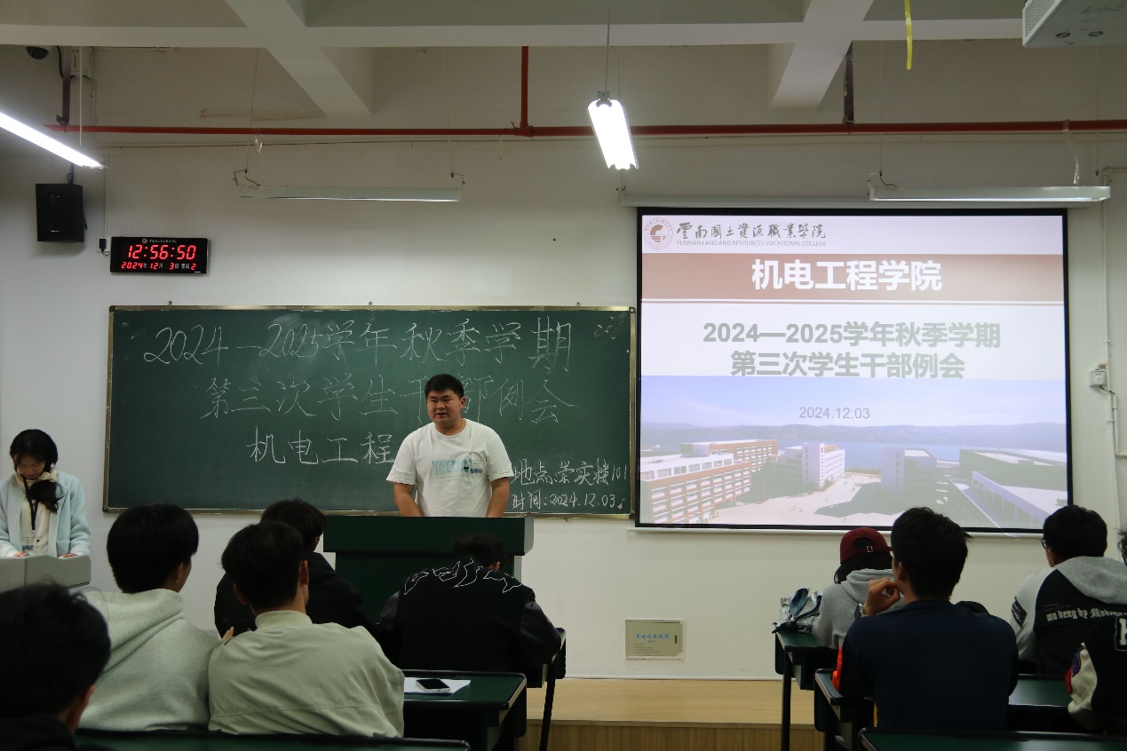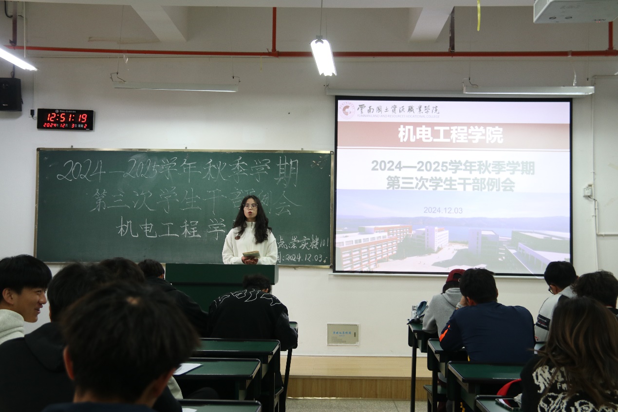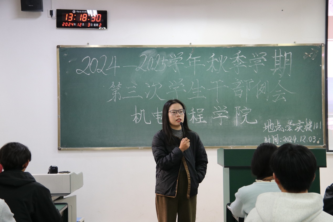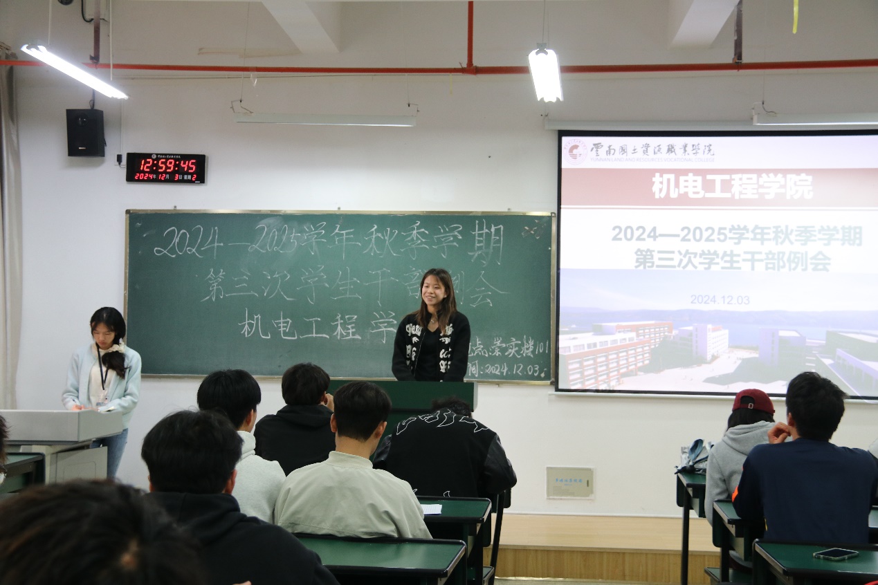 12月3日中午,今年会jinnianhuicom在崇实楼101召开了本学期第三次团总支学生会干部例会。本次会议由学院团总支负责人马玲老师,专职辅导员杨珍妹老师、杨海涛老师及全体团学干部共同参加。