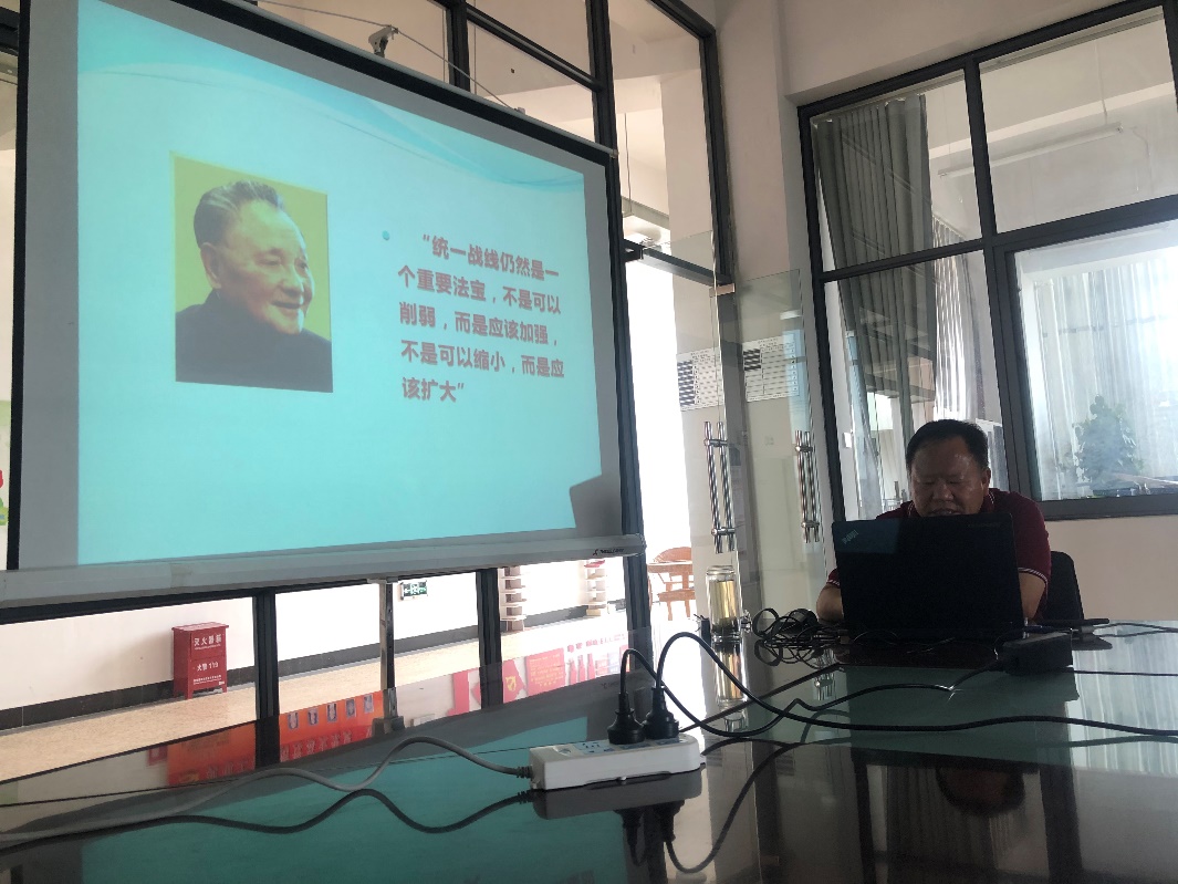 会议第一项,由副校长熊继华同志为大家讲党课,党课主题是“深入学习和领会习近平新时代中国特色社会主义思想——统一战线工作的重要思想”。熊继华同志从“习近平关于新时代统一战线理论的新发展、习近平关于加强和改进统一战线工作的新部署、习近平关于加强和改进统一战线工作的新要求”三个方面阐述了新时代、新形势下统战工作的重要意义及开展方法,分享了各个不同历史时期国家的统战工作开展情况,并强调统一战线初心是坚持大团结、大联合,团结一切可以团结的力量、调动一切可以调动的积极因素,为实现党和国家的宏伟目标而团结奋斗。本次党课主题鲜明、重点突出、内涵丰富、条理清晰,全体教师纷纷表示对统战工作有了更深的认识。